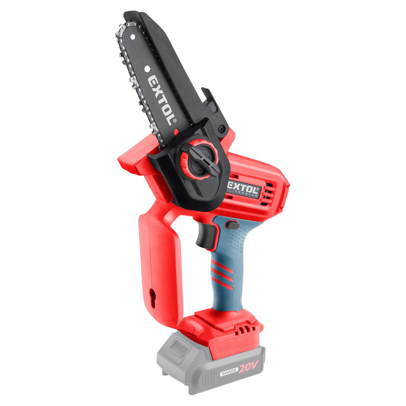 - A 8891922 Extol Prémium egykezes akkumulátoros láncfűrész fák és bokrok metszéséhez, valamint kisebb fakivágásokhoz használható a kertben, illetve daraboláshoz a műhelyben, stb.