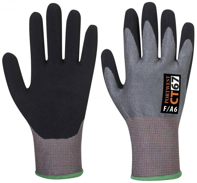 Portwest CT67 - CT AHR vágásbiztos nitril hab kesztyű Cut F, szürke/fekete