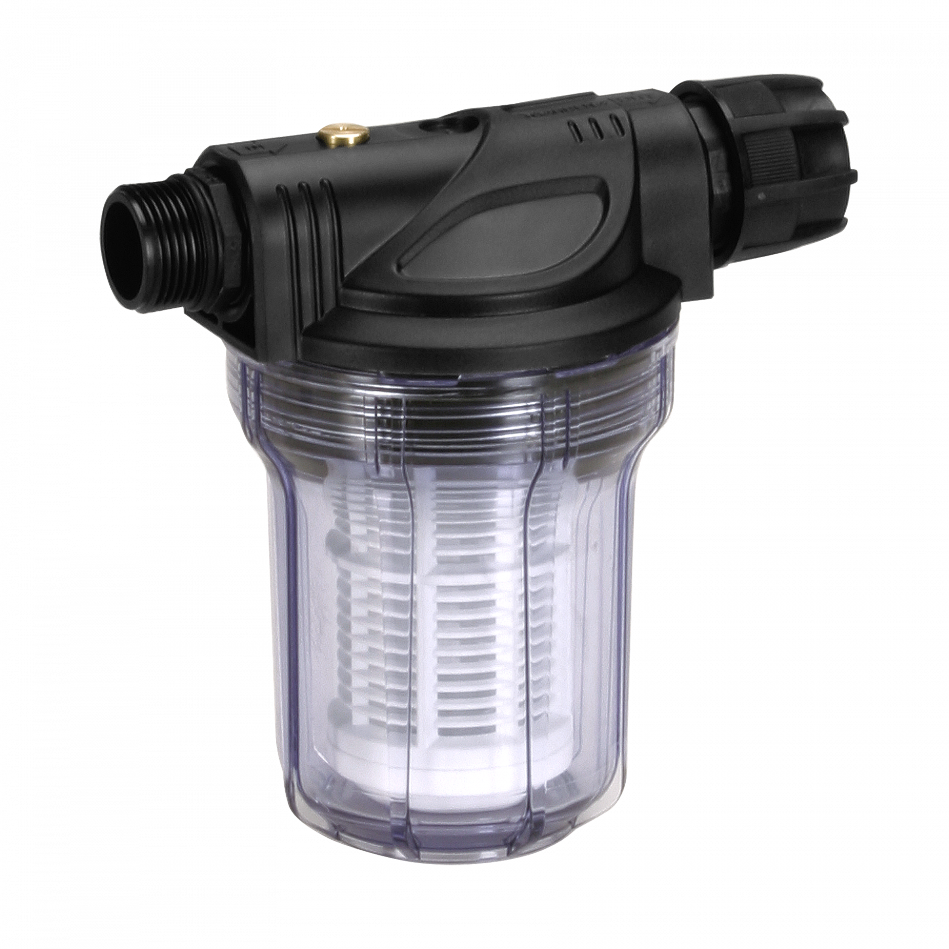 Építse be az előszűrőt a kerti szivattyú, házi vízmű vagy háztartási automata szivattyú és a szívótömlő közé. Az előszűrő hatékonyan véd a szennyeződés ellen; különösen ajánlott a használata, ha a szállítandó közeg homokot tartalmaz. A 33,3 mm-es csatlakozómenettel rendelkező, mosható előszűrő legfeljebb 3000 liter/órás vízátfolyás mellett használható.