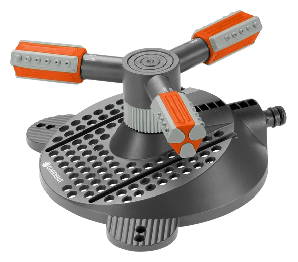 A Mambo köresőztető ideális kisebb és nagyobb területek öntözésére. Ez a locsoló biztosítja az ültetési területek egyenletes és hatékony öntözését. A köresőztető 9 és 310 m² közötti, 3-20 m átmérőjű területek öntözésére a legalkalmasabb. A precíziós szórófejekkel külön-külön beállíthatod az öntözött területet. Ez optimális, 360°-os vízellátást biztosít és tócsák nélküli kertöntözést. A beépített szűrő könnyen tisztítható és karbantartható. A praktikus talpon az esőztető stabilan áll és mobilizálható. A Mambo köresőztető kompatibilis a GARDENA 2075-20 háromlábú állvánnyal, így megemelt esőztetőként is használható.